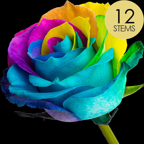 Buy 12 Happy Rainbow Roses From A Real High Street Florist Dedicated To Roses Since 1999